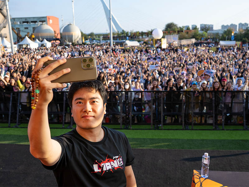 『スマッシュパーク』でのファンとの交流イベントで「自撮り」する梁靖崑(リャン・ジンクン)