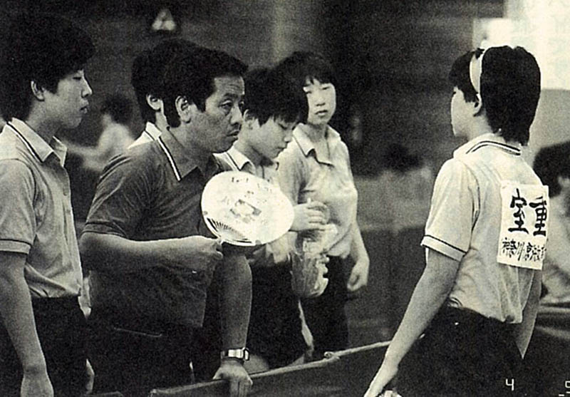昭和60年のインターハイにて。室重にアドバイスを送る筆者