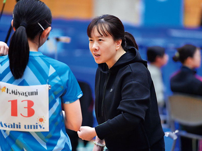 10代で中国から来日し、出雲西高、東北福祉大を経て、日立化成(現・レゾナック)でも活躍した米塚暁(中国名・馮暁雲)。現役引退後は朝日大でコーチを務め、2022年全日学優勝の岡野俊介にもレシーブを指導してきた。