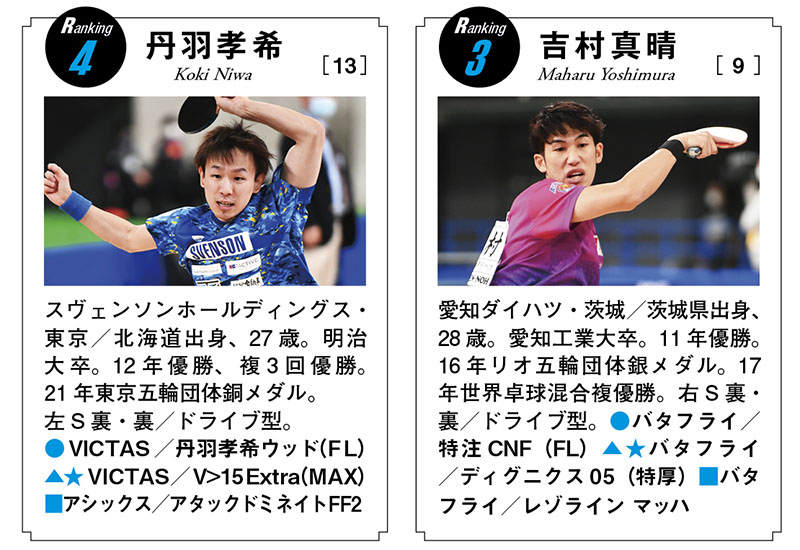 [アーカイブ卓球王国2022年4月号]全日本選手権特集号・男子ランキングプレーヤーデータ