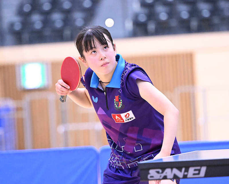 2025年の全日本大学総合選手権(個人の部)、通称・全日学で、シングルス3位、ダブルス優勝という好成績を収めたのが、愛知工業大2年の藤田知子だ。