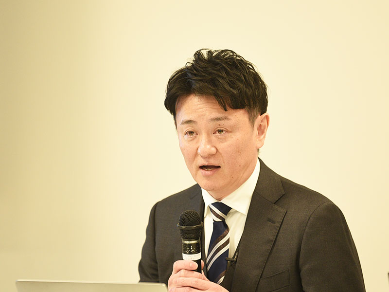 T-NEXTの設立会見で説明する倉嶋洋介氏