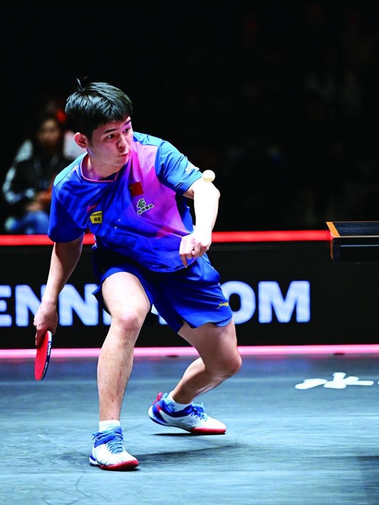 ボールを引きつけてドライブの準備をする林詩棟(中国)