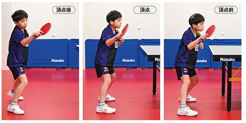 「頂点前」、「頂点」、「頂点後」の3つの打球点を使い分ける。頂点を基準に頂点後の打球を覚えよう