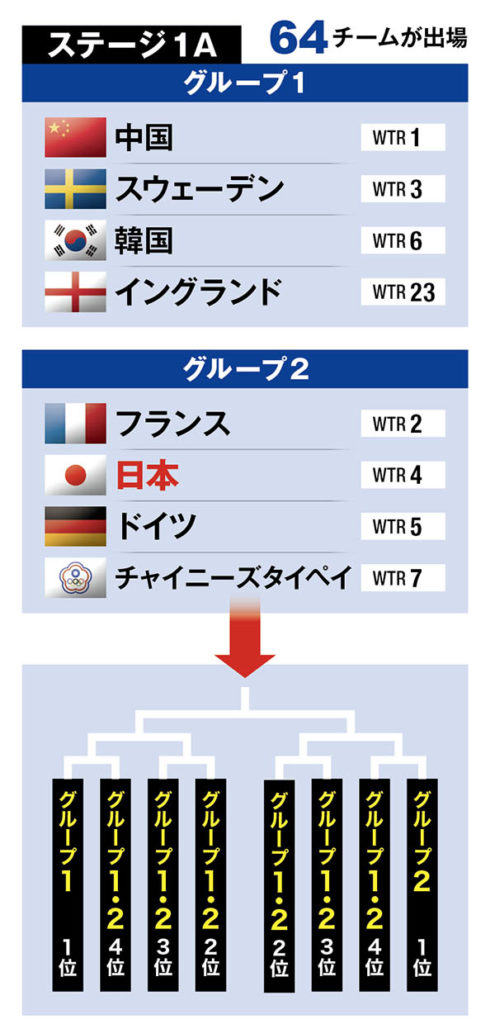 ドロー(組み合わせ抽選)で「ステージ1B」を勝ち上がったチームがシードの間に入るので、シードのチーム同士が対戦するのは準々決勝だ。